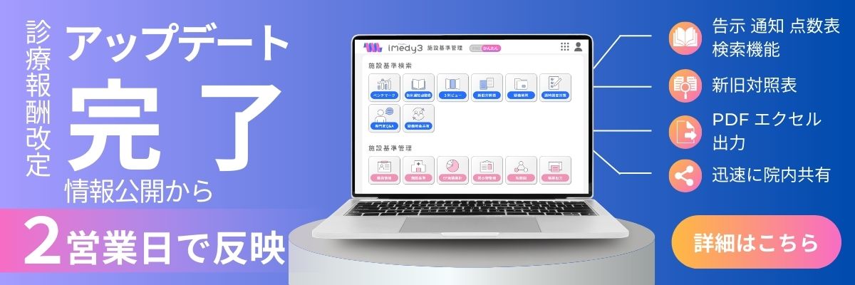 「iMedy(アイメディ)」は、施設基準に関する業務情報とノウハウを蓄積し、医療機関の情報資産を構築できるクラウドサービスです。