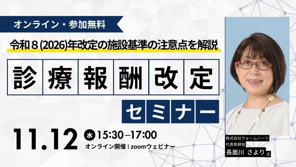 セミナー名 | 診療報酬改定セミナー ~令和8(2026)年度診療報酬改定における施設基準の注意点を解説~ |